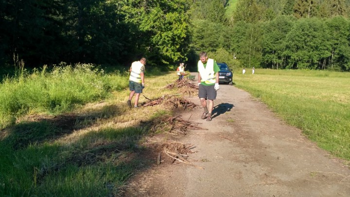 Brigáda výboru Urbáru - vyčistenie skládky dreva (poskytnutý pozemok Komposesorátom Bielo-Marušová) po spracovaní štiepky z r. 2014 -- 21.6.2017