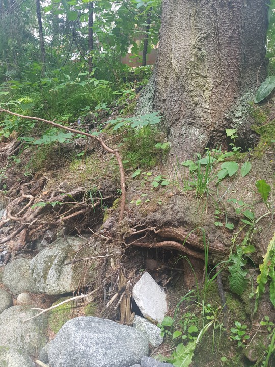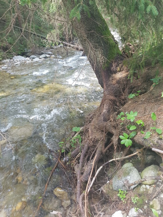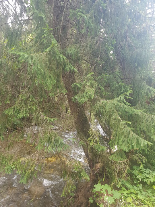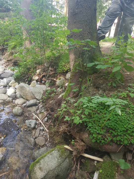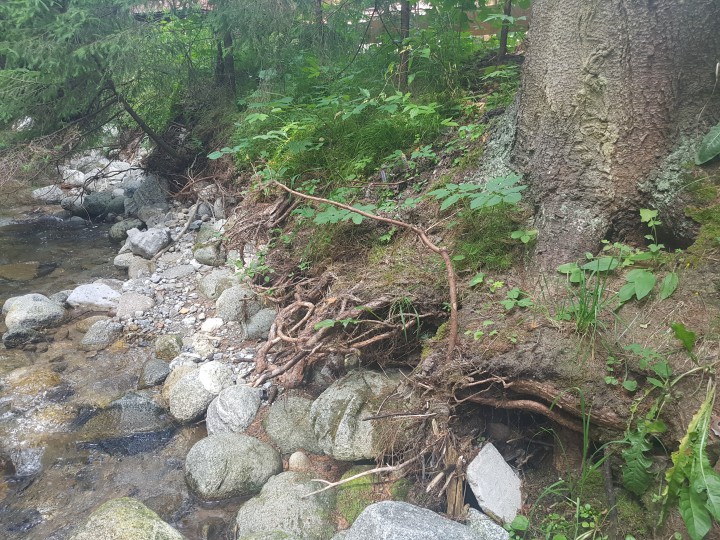 Poškodené stromy po povodni - breh potoka Štiavnica - júl 2017
